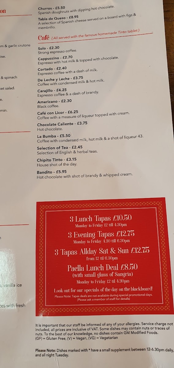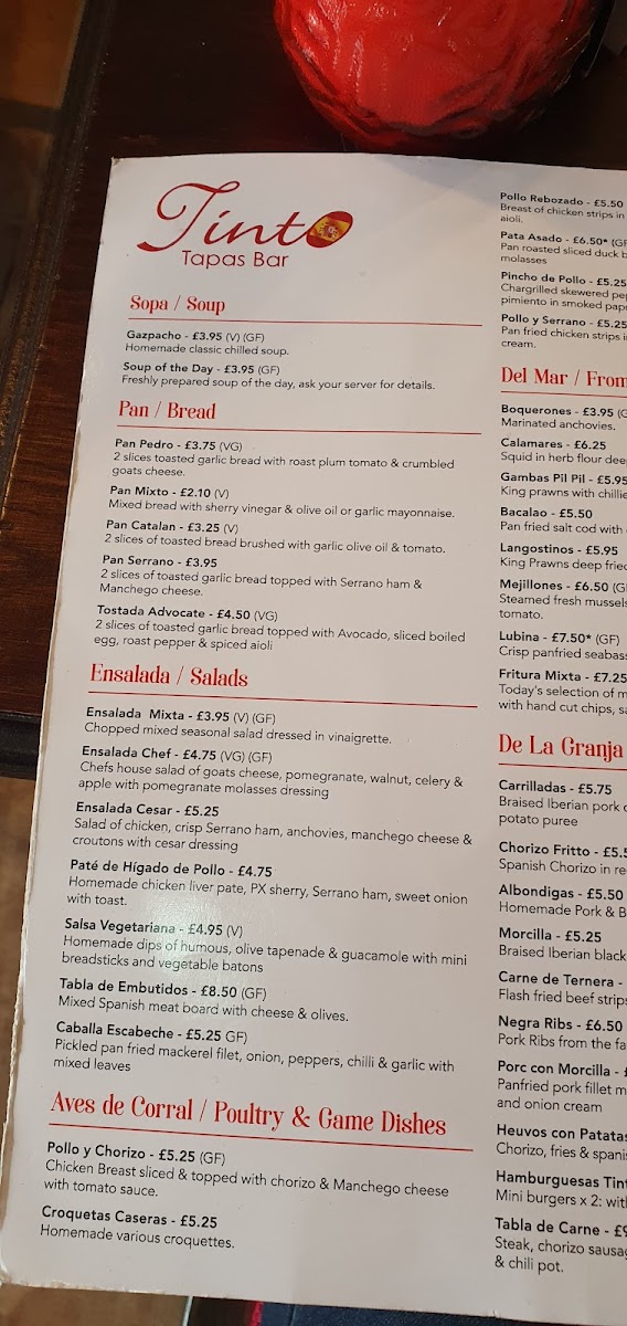 Welcome to Tinto Tapas Bar - Langside, a delightful gem nestled in Glasgow at 138 Battlefield Rd. This vibrant eatery offers a rich menu that celebrates the essence of Spanish cuisine with a Scottish twist. The array of dishes is thoughtfully crafted, featuring options like the refreshing Gazpacho and various Ensaladas that are perfect for sharing. The meat lovers will adore the Carrilladas and Chorizo Fritto, while the unique Morcilla adds a traditional flair.